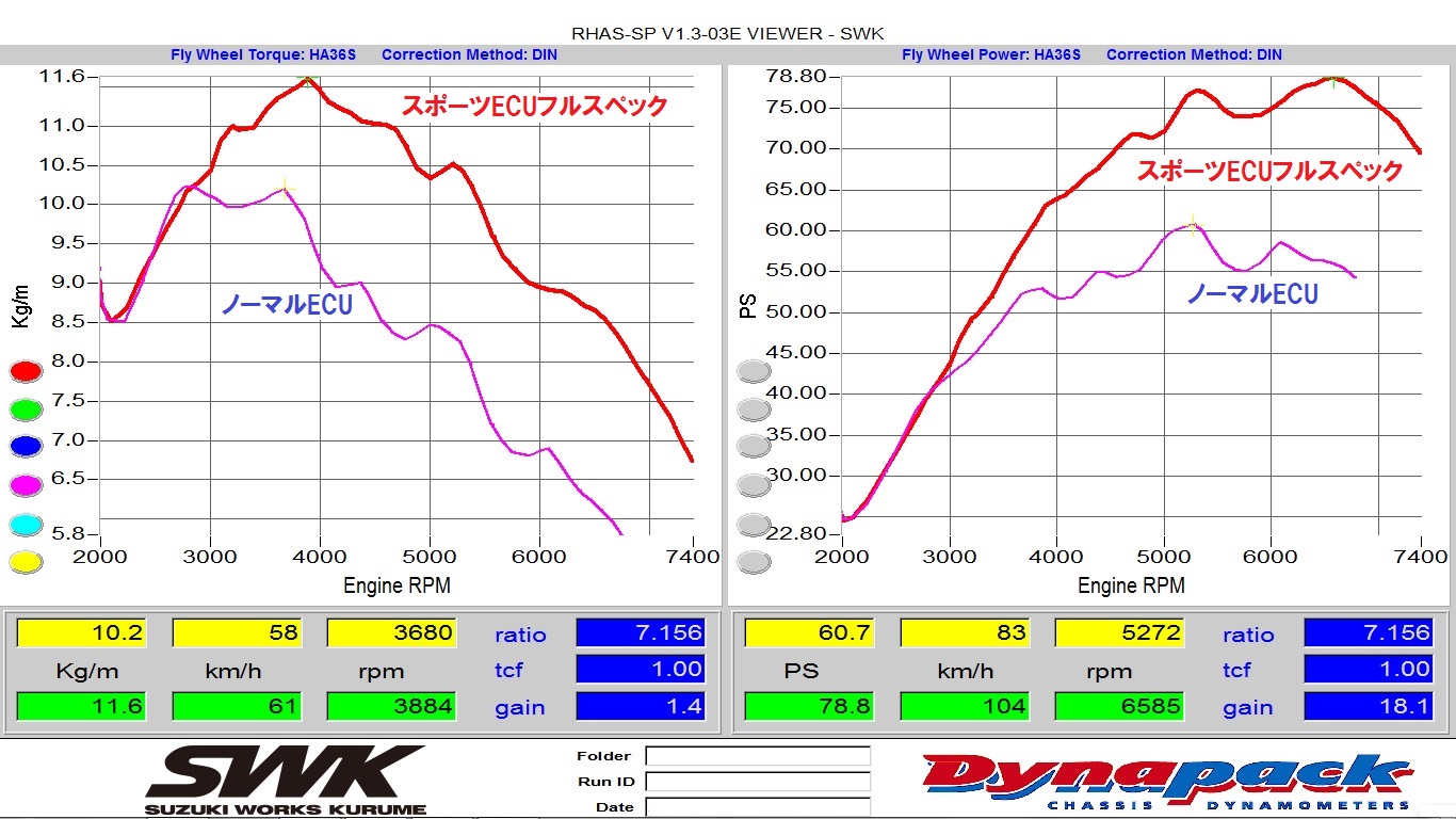 右グラフ (パワー値) 60.7PS → 78.8PS