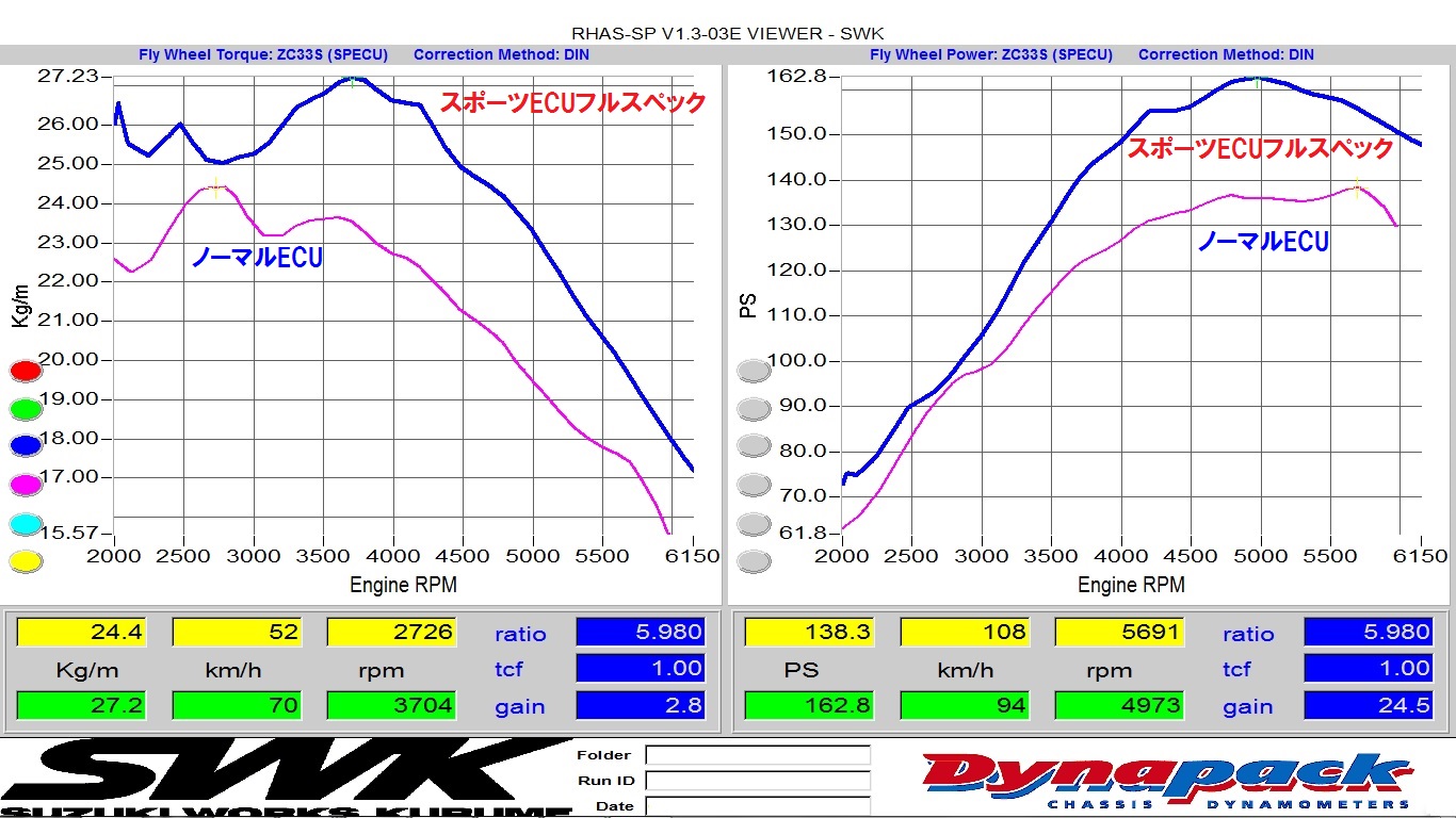 右グラフ (パワー値) 138.3PS → 162.8PS