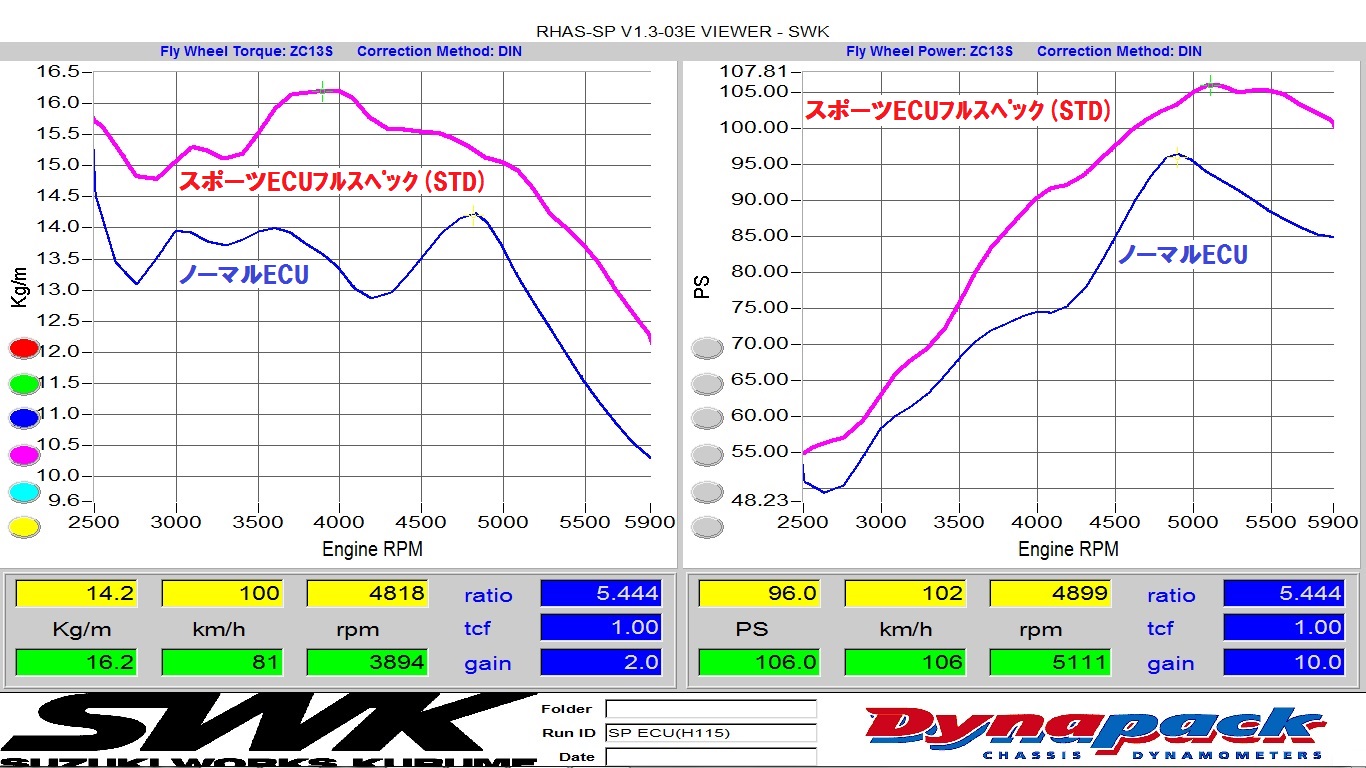 右グラフ (パワー値) 96.0PS → 106.0PS