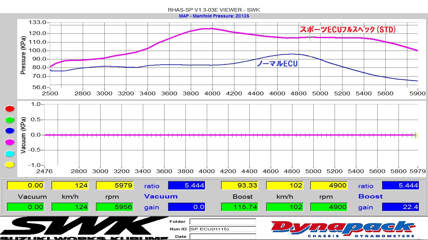 参考ブースト ノーマルパワーグラフ最大出力時(4900rpm) 93.3KPa → 115.7KPa
