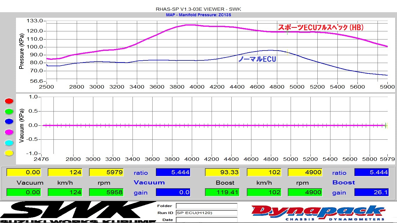 参考ブースト ノーマルパワーグラフ最大出力時(4900rpm) 93.3KPa → 119.4KPa
