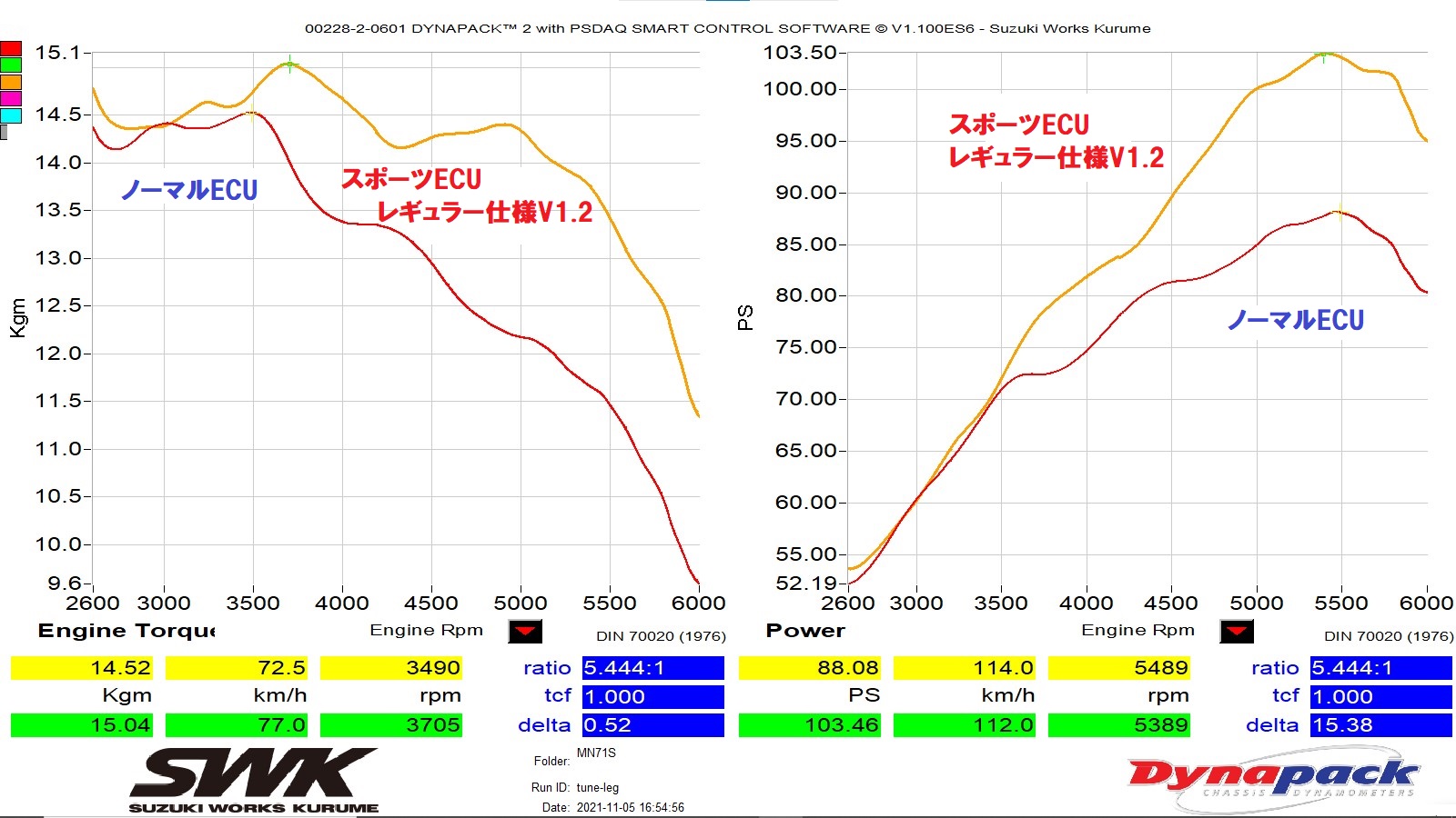 右グラフ (パワー値) 88.08PS → 103.46PS