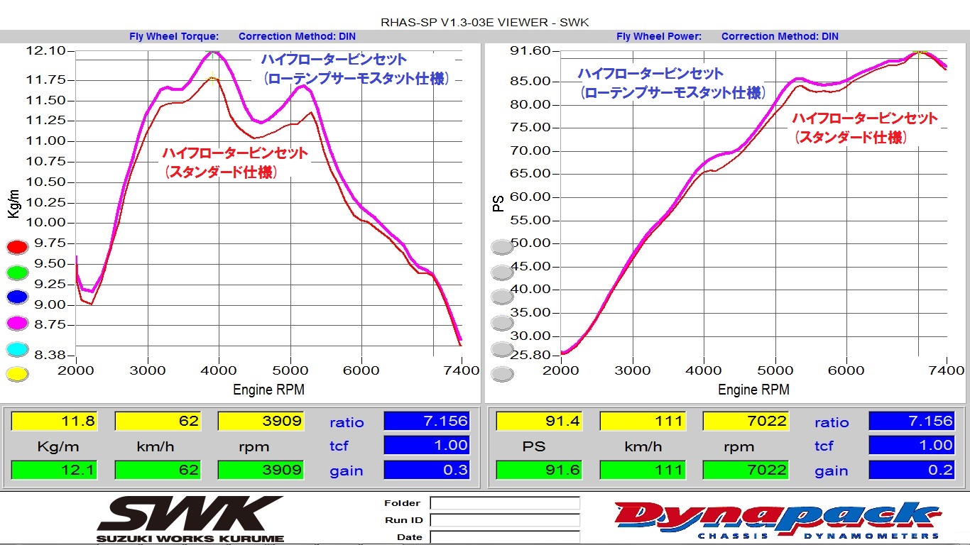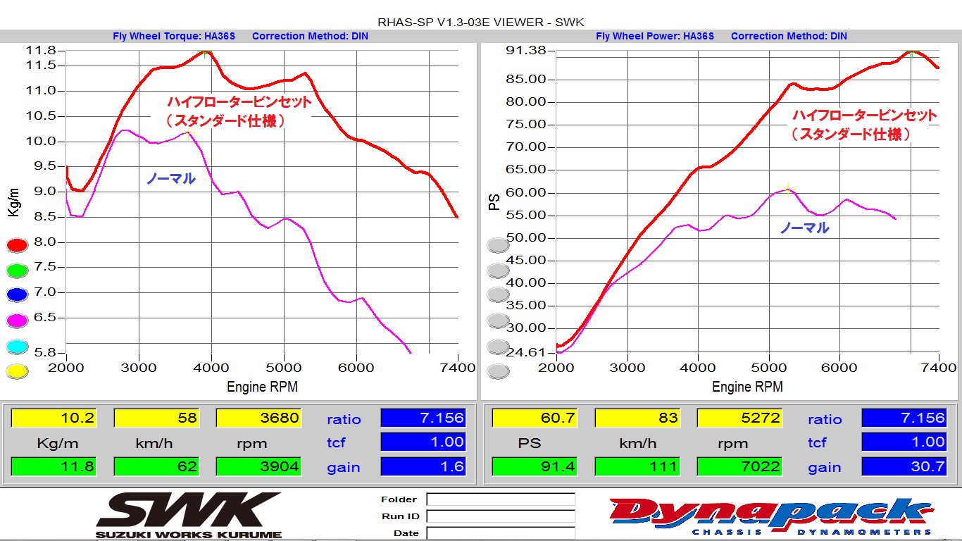 右グラフ (パワー値) 78.7PS → 91.4PS