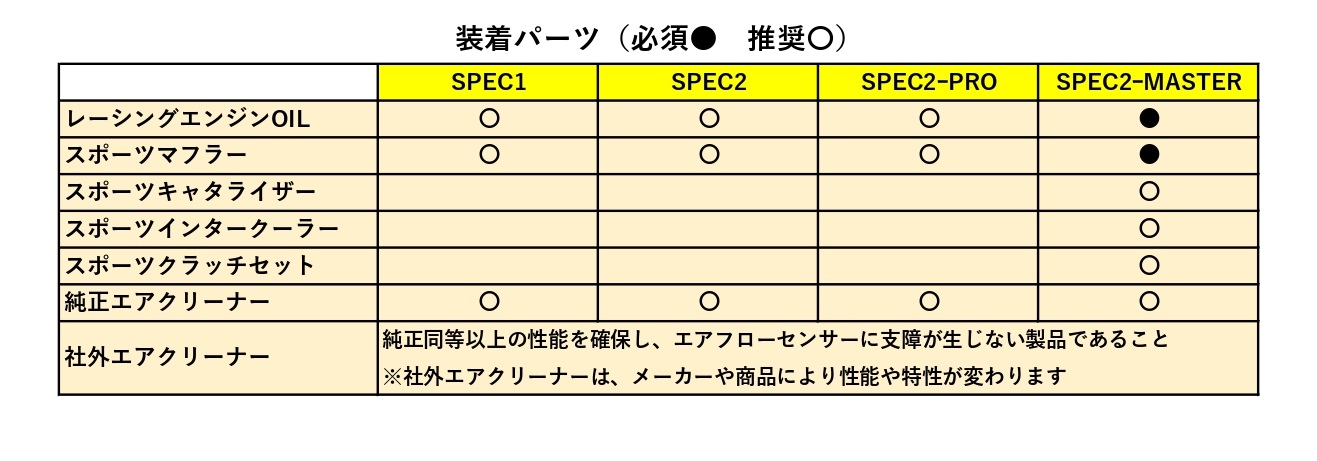 SPEC2MASTERではハイブースト化し、低回転域から鋭い加速をもたらします